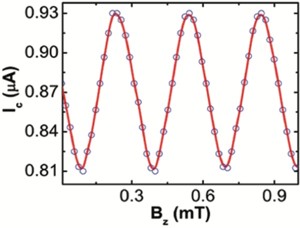Bottom right: Low field oscillations of the critical current with period 0.3 mT. These devices also operate under fields up to 4 T, this is the highest magnetic field operation (at normal incidence) of a SQUID reported.