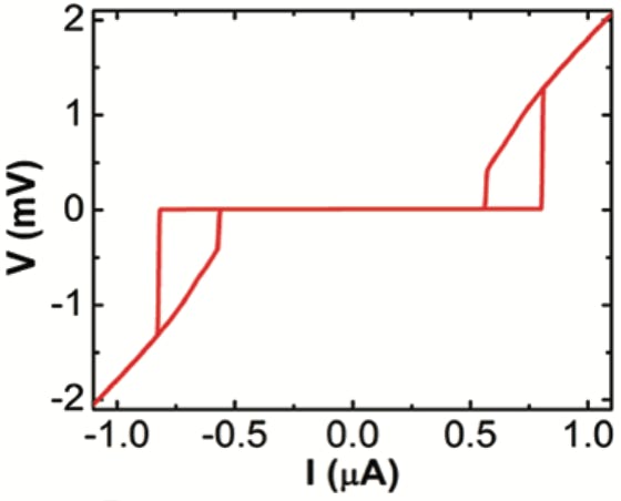 Bottom middle: Clear junction like behaviour of weak links (100 nm) within the SQUID. The junctions show clear hysteresis.